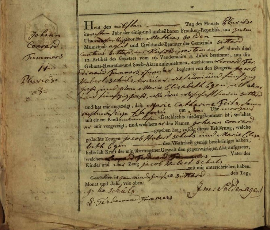 Geboorteakte van Johann Conrard Tummers op 31 januari 1800
