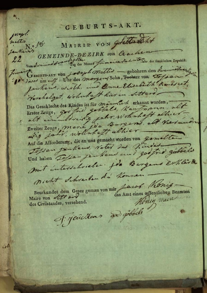 Geboorteakte van Joseph Mattis Jeukens van 13 december 1801