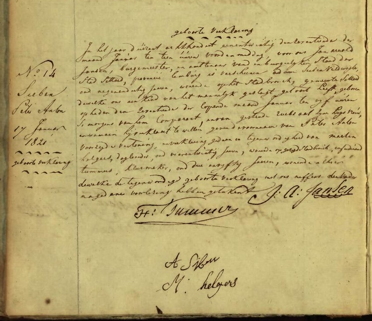 Geboorteakte van Peter Anton Sieben van 17 januari 1821