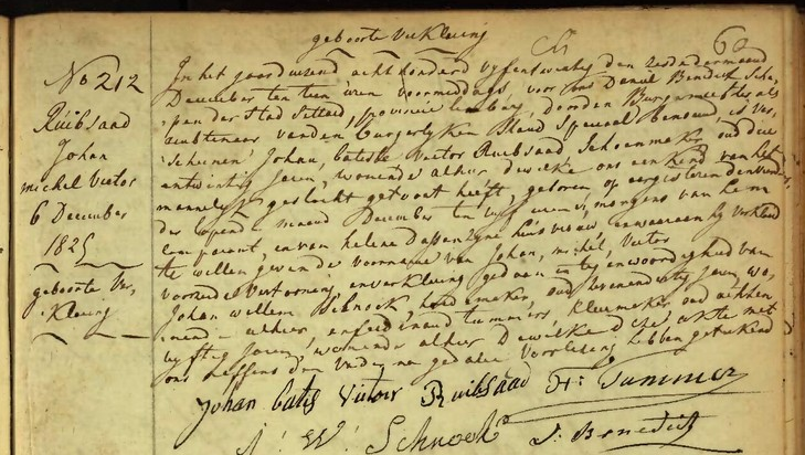 Geboorteakte van Johan Michel Victor Ruibsaad van 4 december 1825