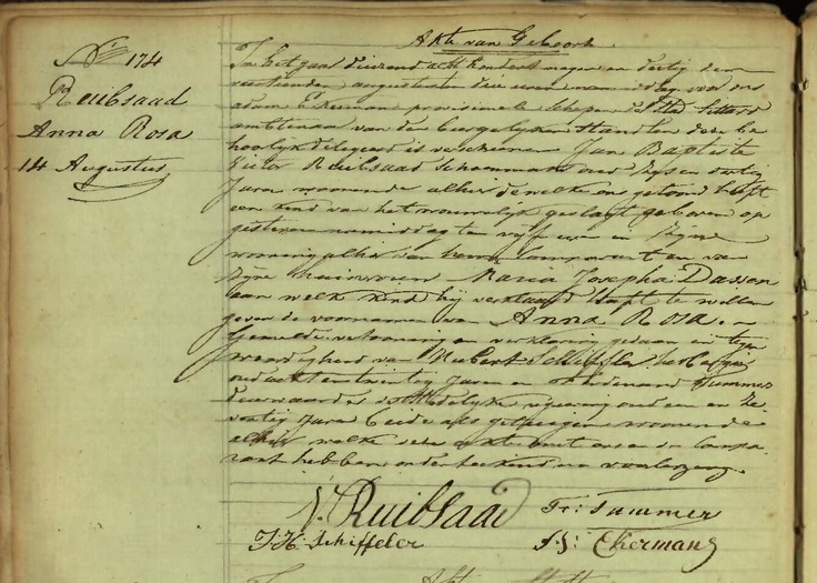 Geboorteakte van Anna Rosa Reubsaad van 13 augustus 1839