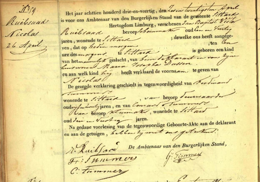 Geboorteakte van Nicolas Ruibsaad van 26 april 1843