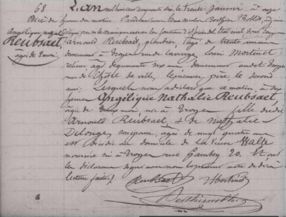 Overlijdensakte van Angélique Nathalie Reubsaet van 30 januari 1856