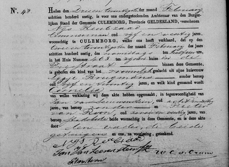 Geboorteakte van Cornelia Reubzaad van 22 februari 1860