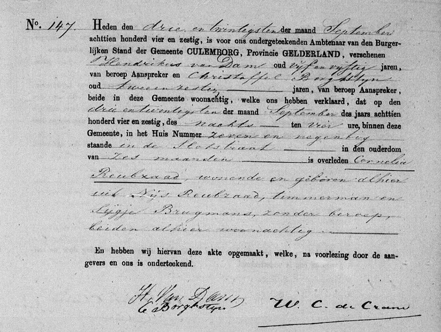 Akte van Overlijden van Cornelia Reubzaad van 23 september 1864