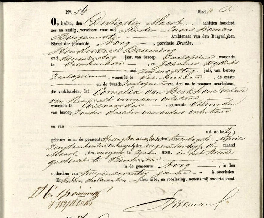 Overlijdensakte van 30 maart 1866 van Cornelia van Berkhom