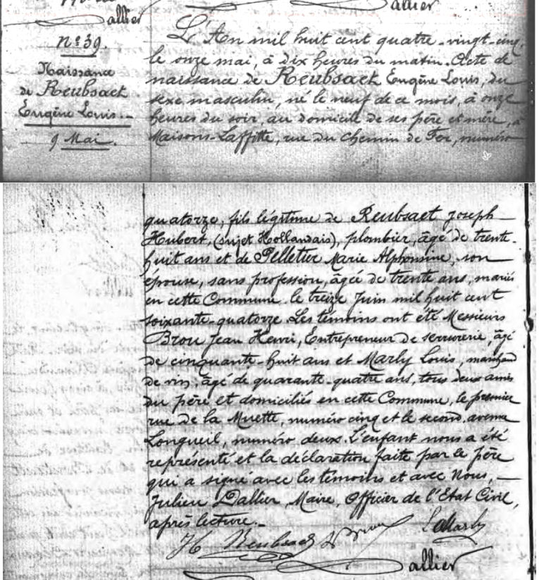 Geboorteakte van Eugene Louis Reubsaet van 11 mei 1885