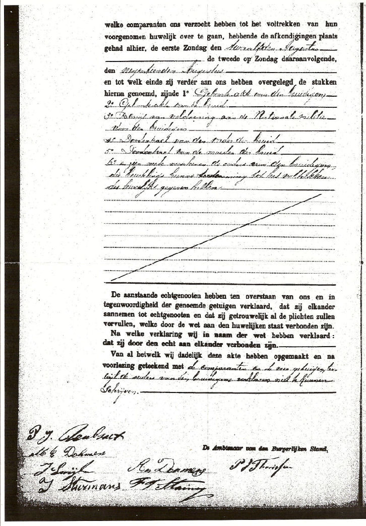 Getuigen: Johan Suilen, Antoon Sturmans, Antoon Deumens en Franciscus Theodorus Herings.