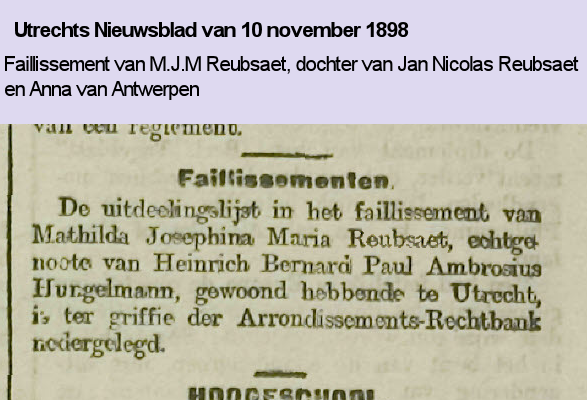 Vermelding in Utrechts Nieuwsblad van 10 november 1898