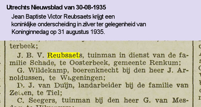 Vermelding in Utrechts Nieuwsblad van 30 augustus 1935.
