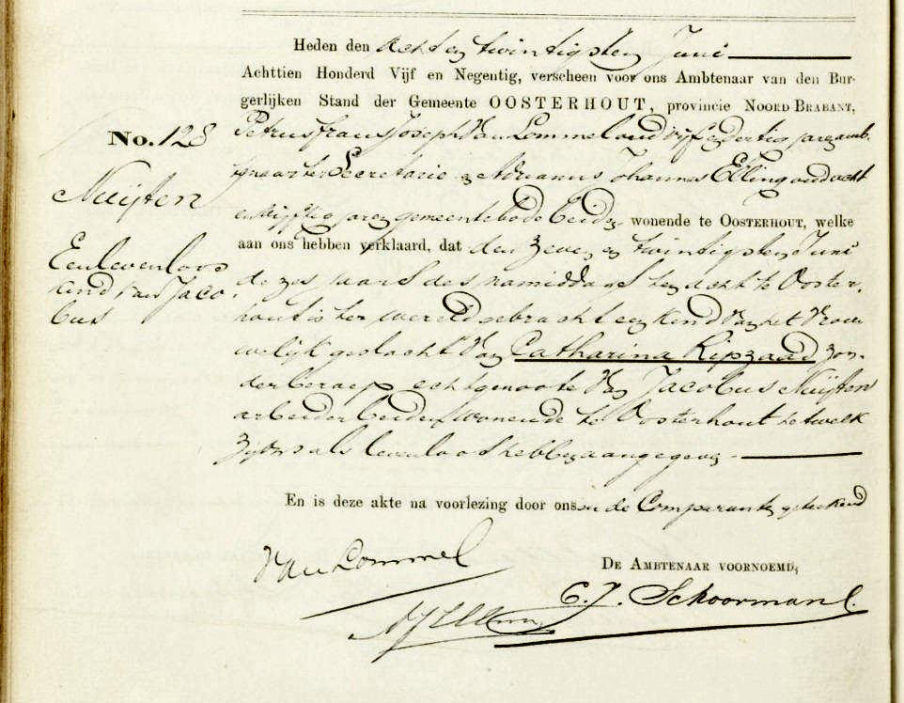 getuigen: Petrus Frans Joseph van Lommel en Adrianus Johannes Elling