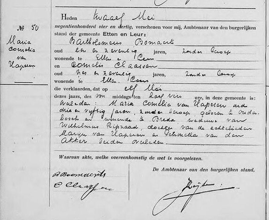 Overlijdensakte van Maria Cornelia van Haperen van 11 mei 1934 uit Etten Leur