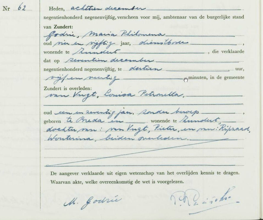 Overlijdensakte van Louisa Petronella van Vugt van 17 december 1959 uit Zundert
