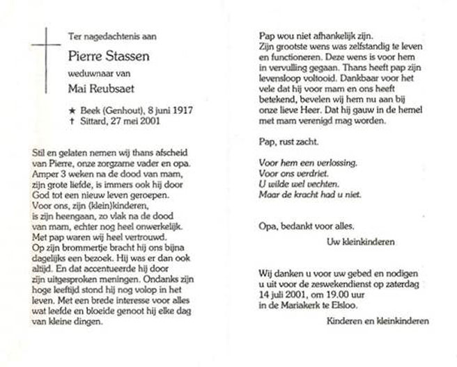 Piérre Mathieu Stassen echtgenoot van Maria Reubsaet.
