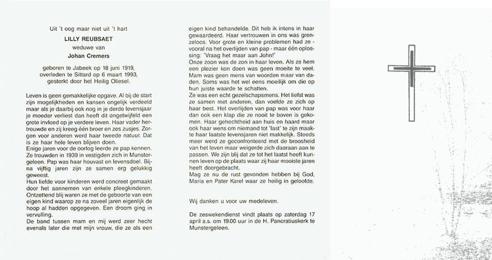 Lilly Reubsaet echtgenote van Johan Cremers.