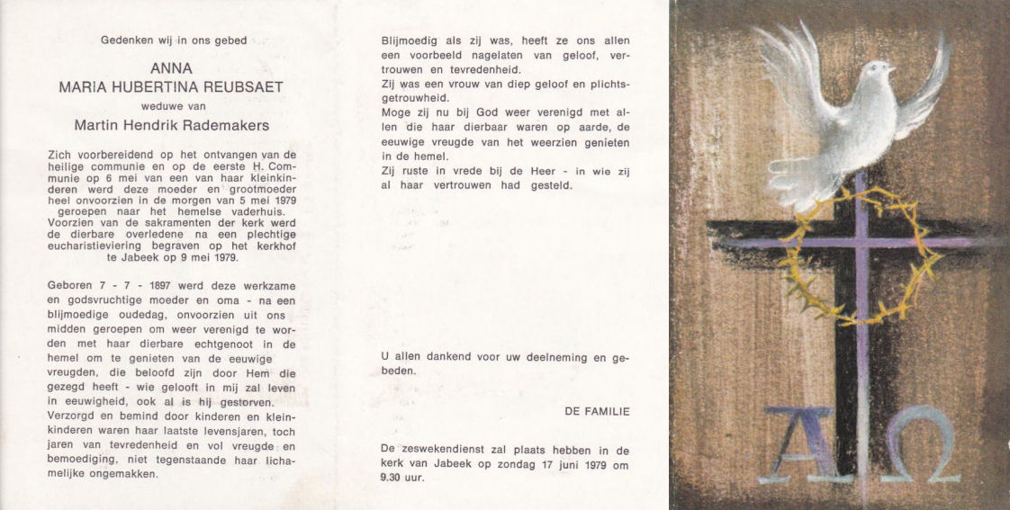Anna Maria Hubertina Reubsaet, echtgenote van Martin Hendrik Rademakers.