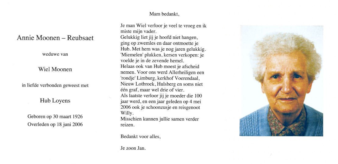 Annie Reubsaet, echtgenote van Wiel Moonen.