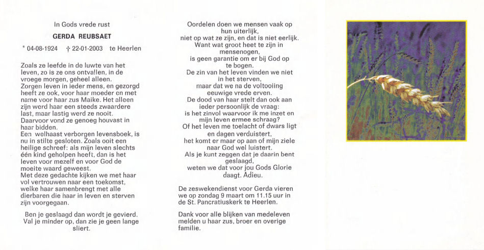 dochter van Willem Hubert Reubsaet en Anna Elisabeth Alofs