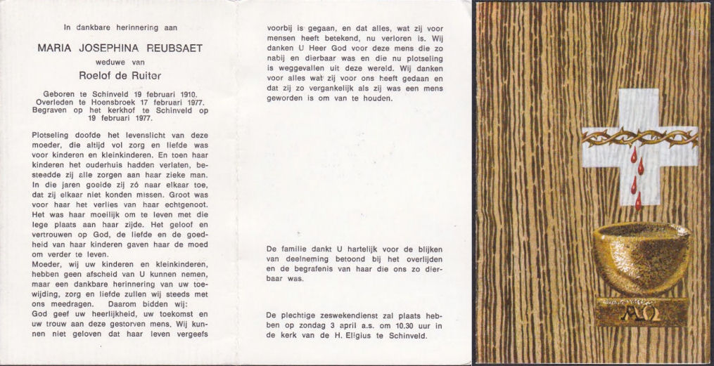 Maria Josephina Reubsaet, echtgenote van Roelof de Ruiter.