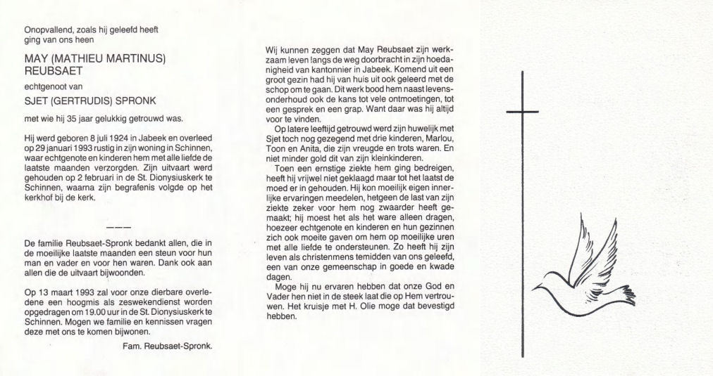 Mathieu Martinus Reubsaet, echtgenoot van Gertrudis Spronk.