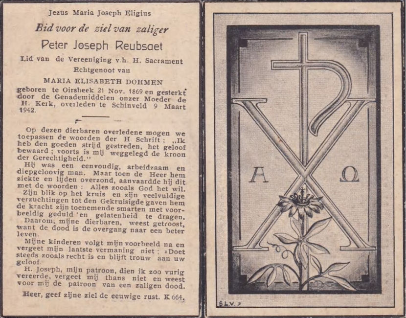 Peter Joseph Reubsaet, echtgenoot van Maria Elisabeth Dohmen.
