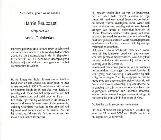 Harrie Reubzaet, echtgenoot van Annie Duinkerken.