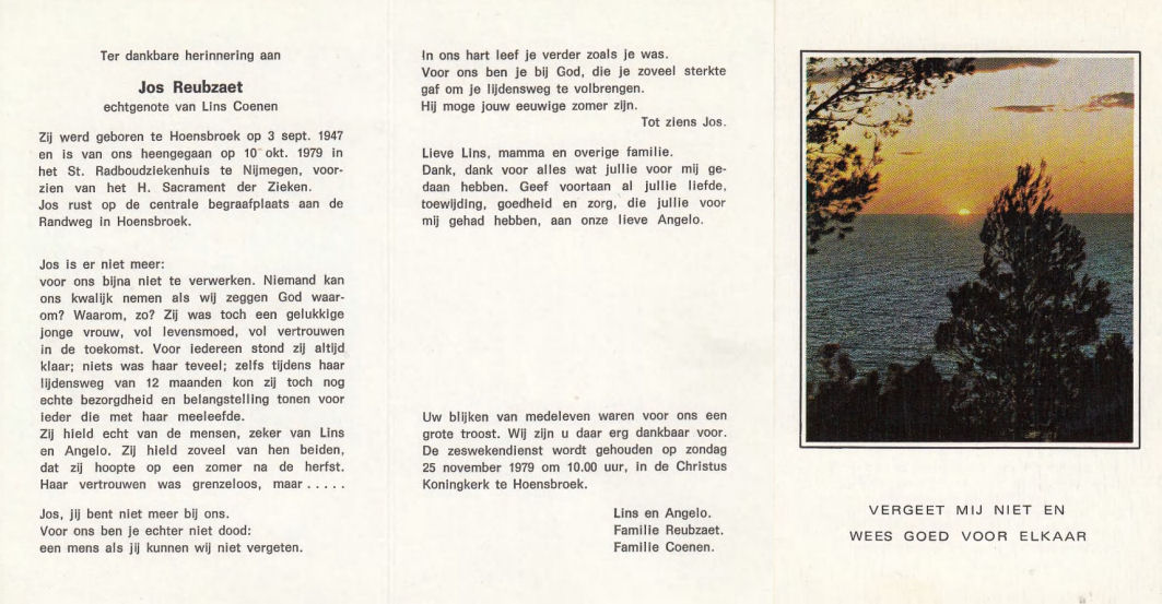 Jos Reubzaet, echtgenote van Lins Coenen.