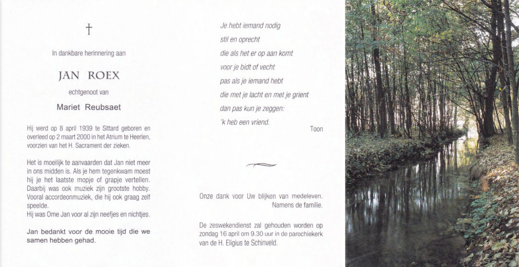 Jan Roex, echtgenoot van Mariet Reubsaet.