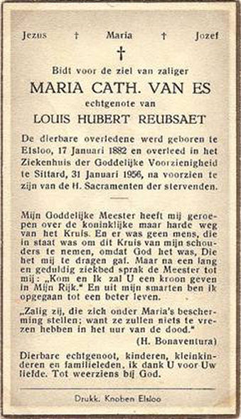 Maria Catharina van Es, echtgenote van Lodewijk Hubert Reubsaet.