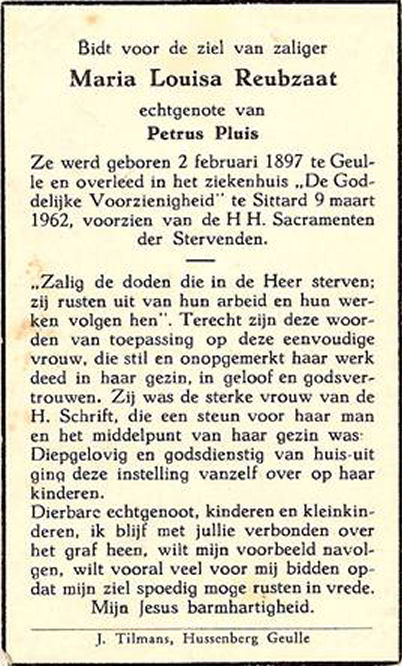 Maria Louisa Reubzaat echtgenote van Petrus Pluis.