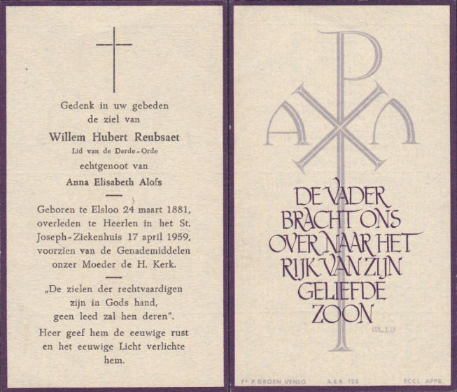 Willem Hubert Reubsaet echtgenoot van Anna Elisabeth Alofs.