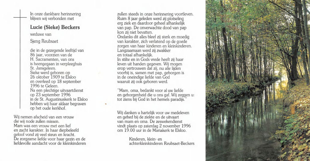 Lucie Beckers echtgenote van Sjeng Reubsaet.