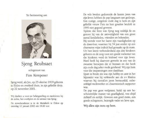 Jan Reubsaet echtgenoot van Maria Hubertina Josephina Kempener.