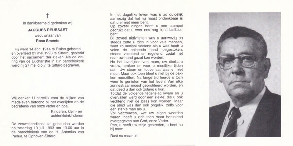 Jacques Reubsaet echtgenoot van Rosa Smeets.