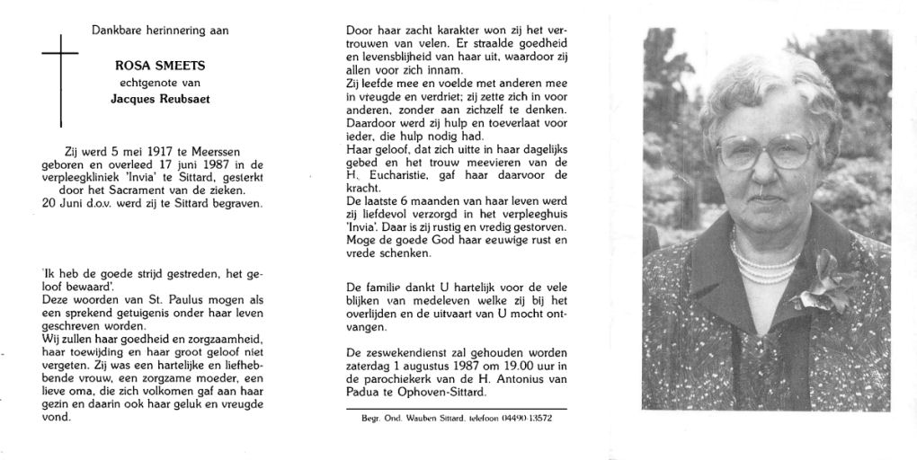Rosa Smeets echtgenote van Jacques Reubsaet.